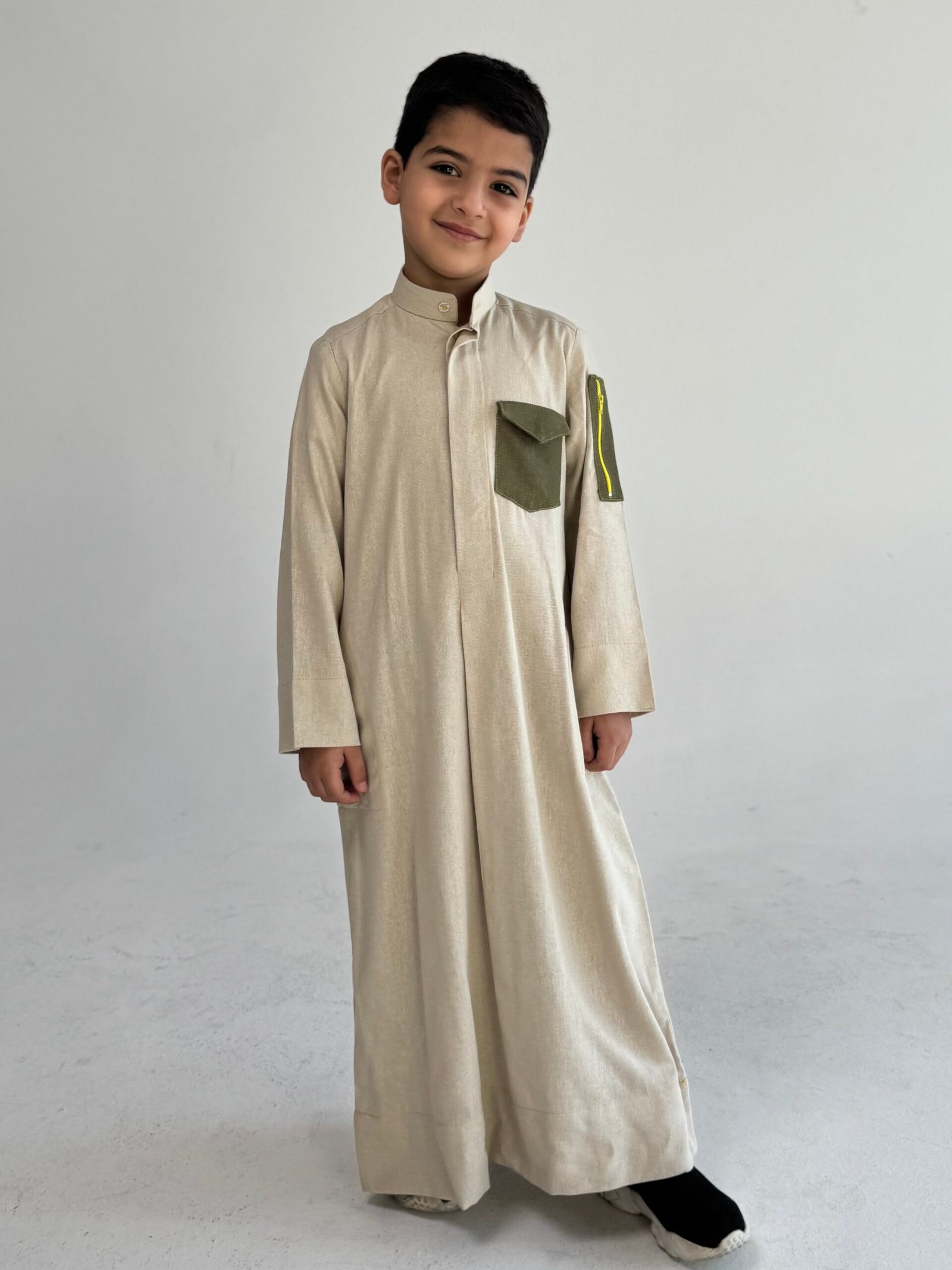 دشداشة لينن لون بيج غامج – دشداشة فقط